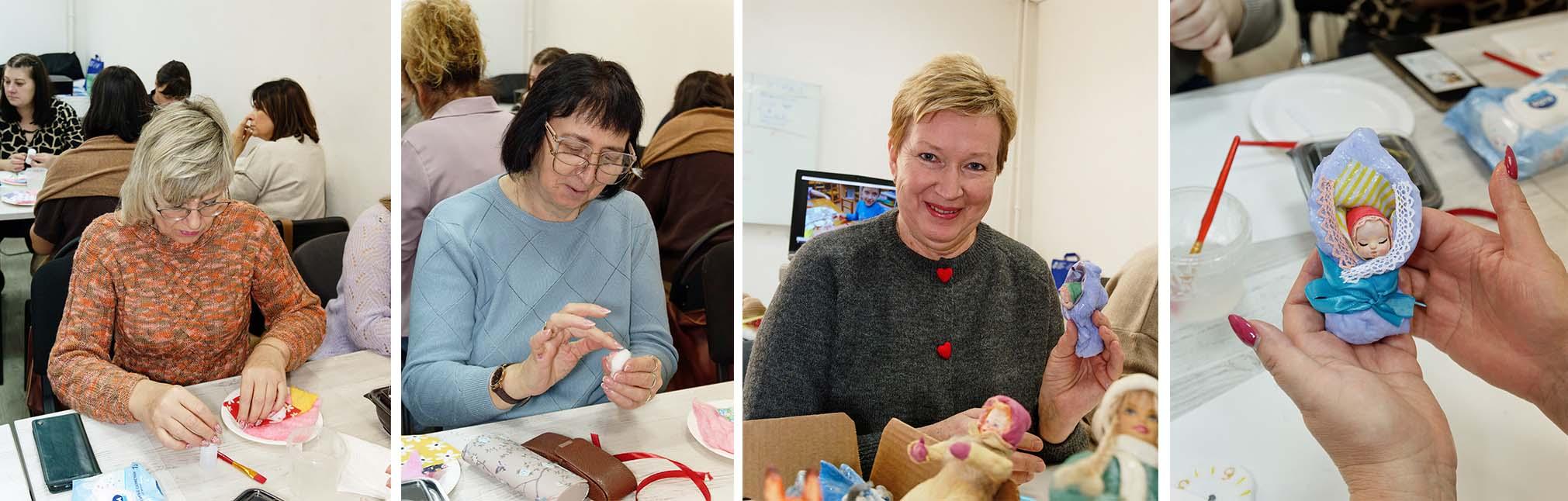 Под руководством опытного наставника и Главного эксперта в Чемпионате «УМЕНИЯ ЮНЫХ» Довжик Ирины Анатольевны гости погрузились в тонкости традиционного ремесла. Участники создали две изящные работы: фигурку куколки и настенные часы, освоив все этапы — от создания каркаса и формовки из ваты и фольги до декорирования.