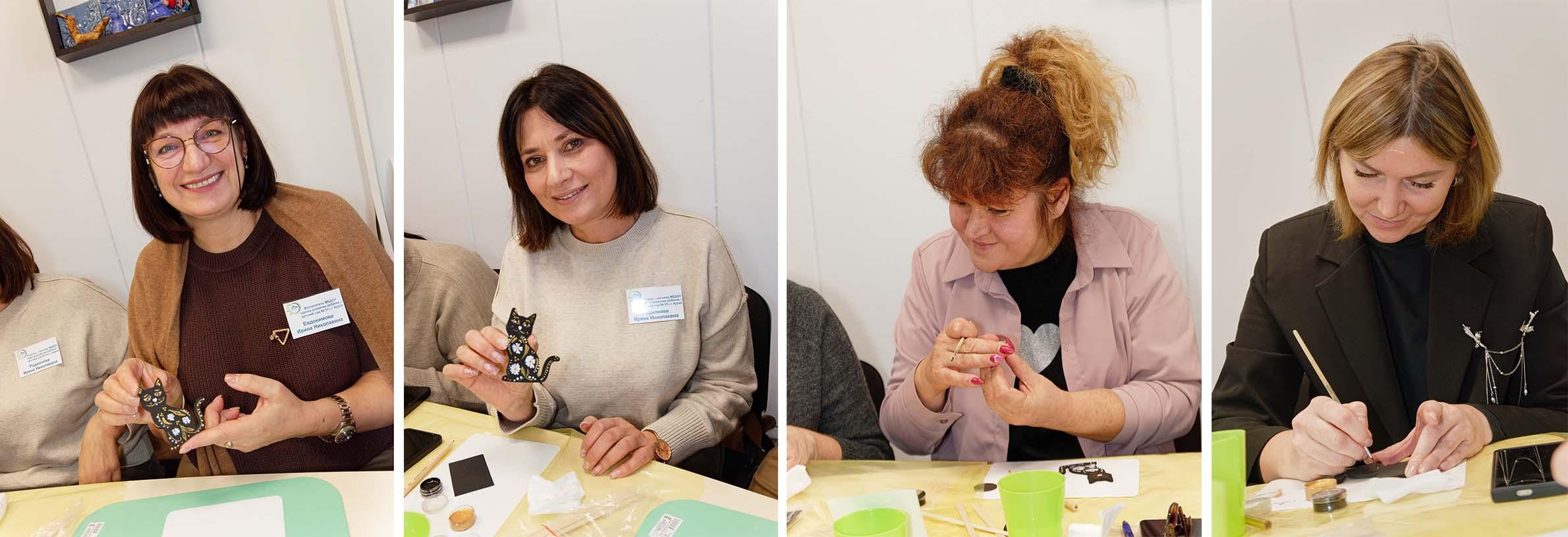 Под чутким руководством опытного специалиста и Главного эксперта Чемпионата «УМЕНИЯ ЮНЫХ» Кашицыной Ирины Викторовны коллеги познакомились с историей и особенностями уникальной Петербургской росписи и применили новые знания, расписывая фигурки котов.