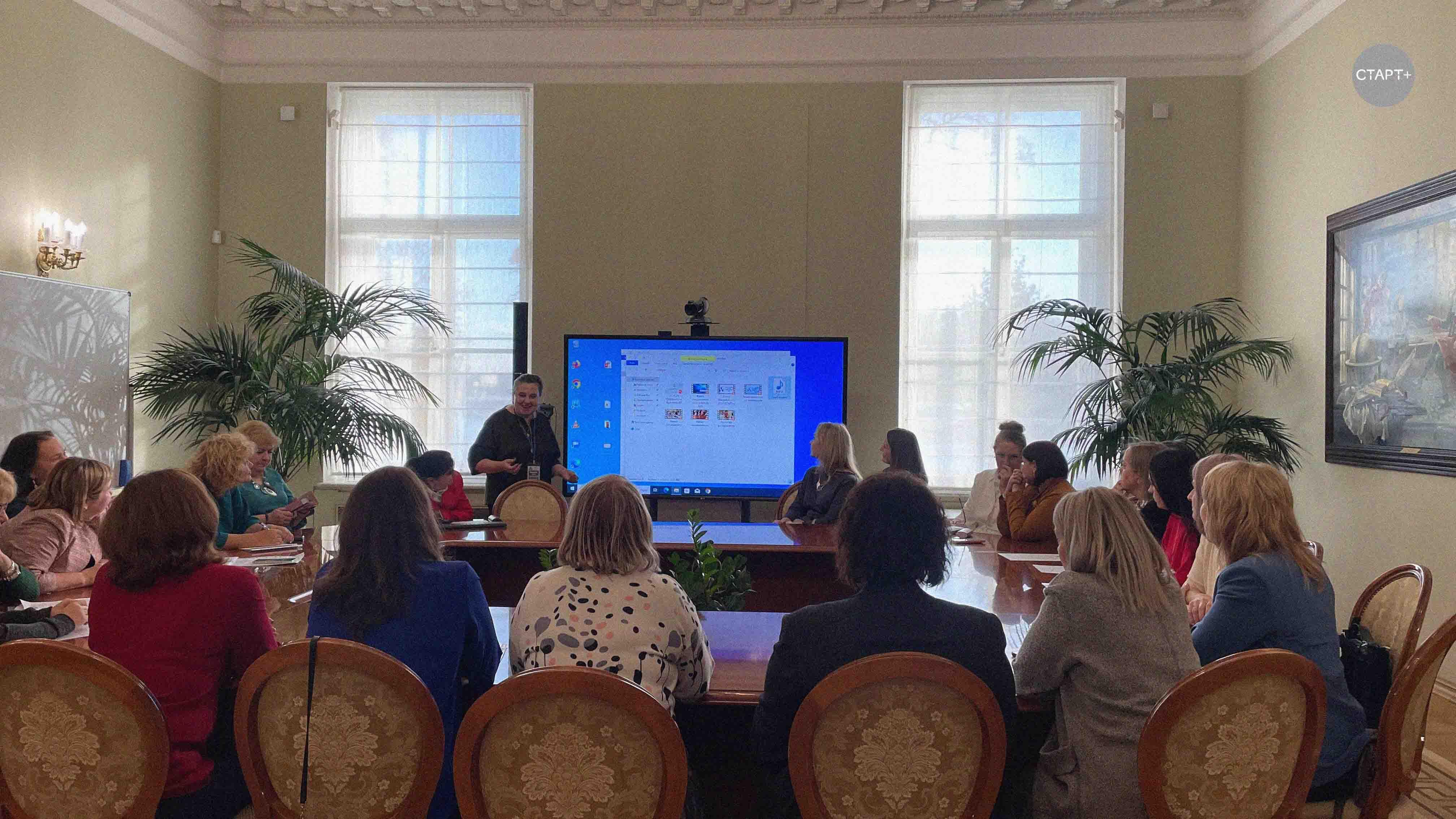 Второй день семинара проходил в Академии талантов. Гостей встретила методист Малинина Татьяна Викторовна. Она провела увлекательную экскурсию по Каменноостровскому дворцу. Педагоги поделились актуальными материалами по ранней профориентации: