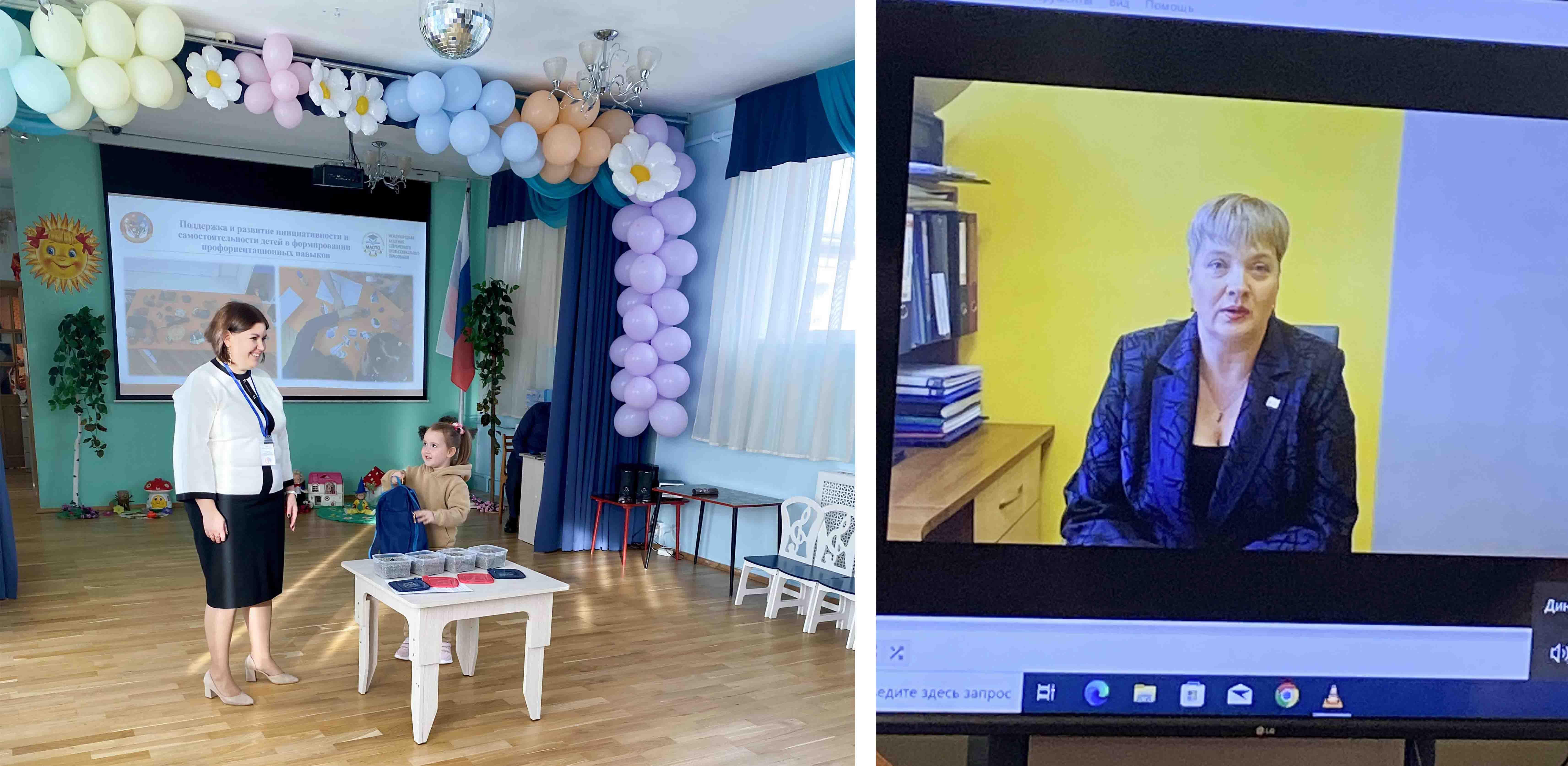 - Давыдова Кристина Викторовна, заведующий МБДОУ "Центр развития ребенка - детский сад № 113" г. Курска: "Развитие предметно-пространственной среды, способствующей поддержке ранней профориентации детей".