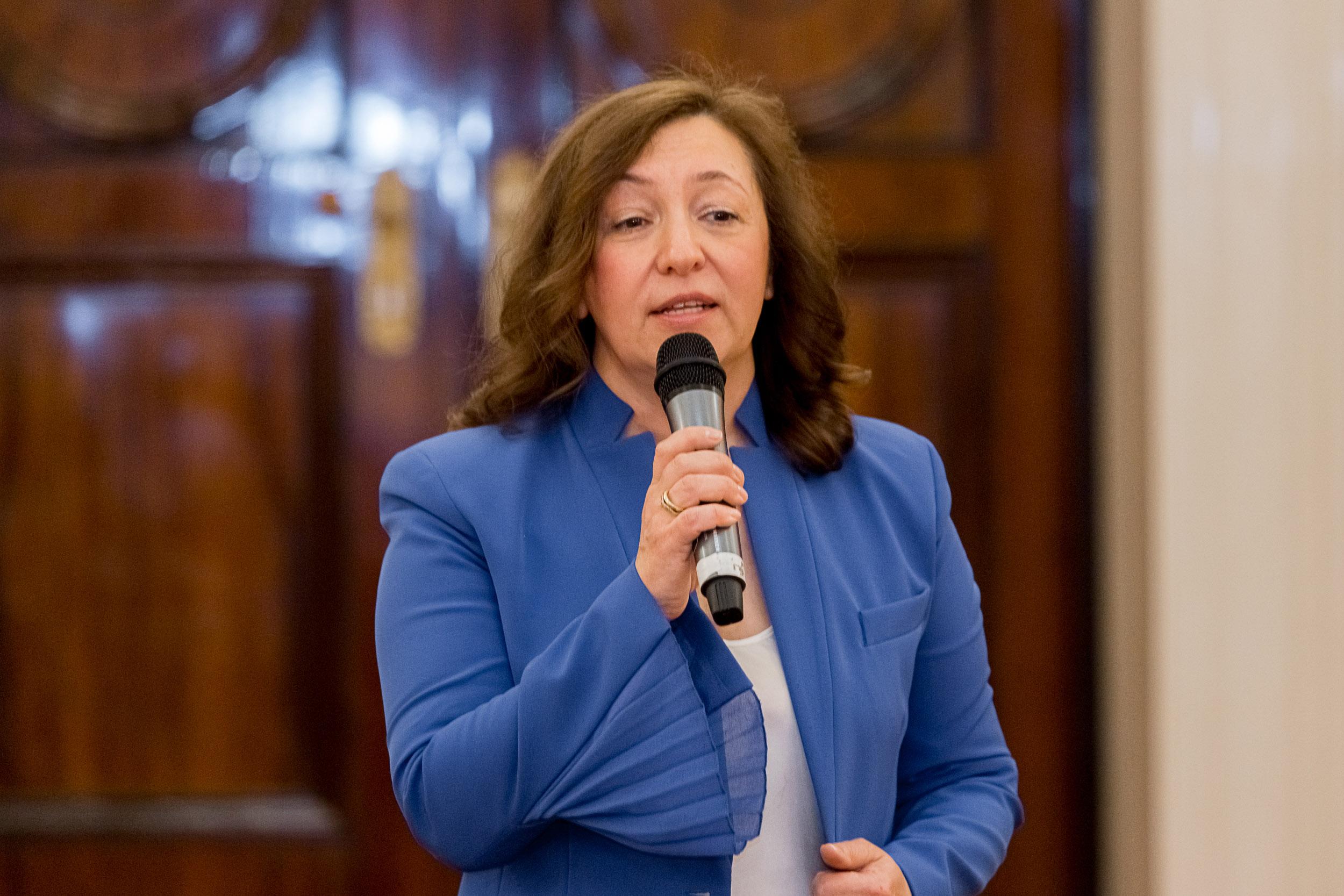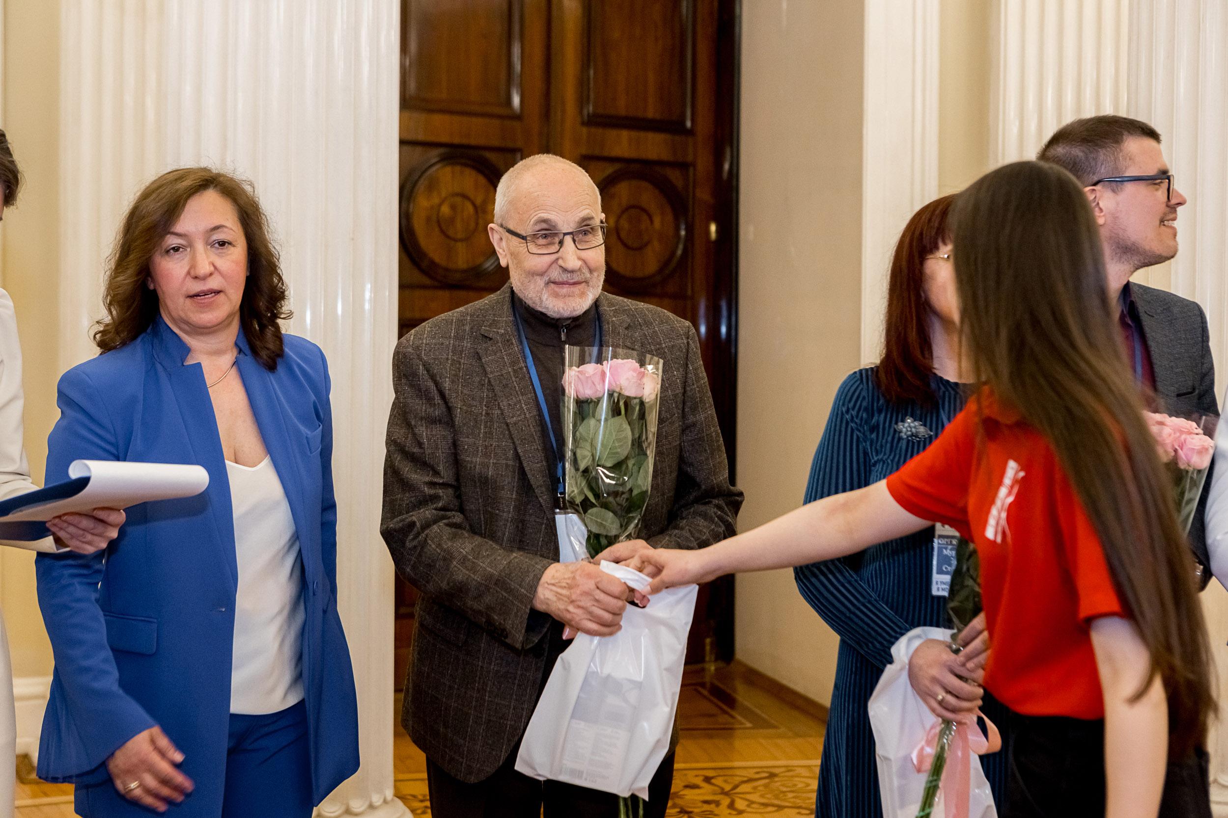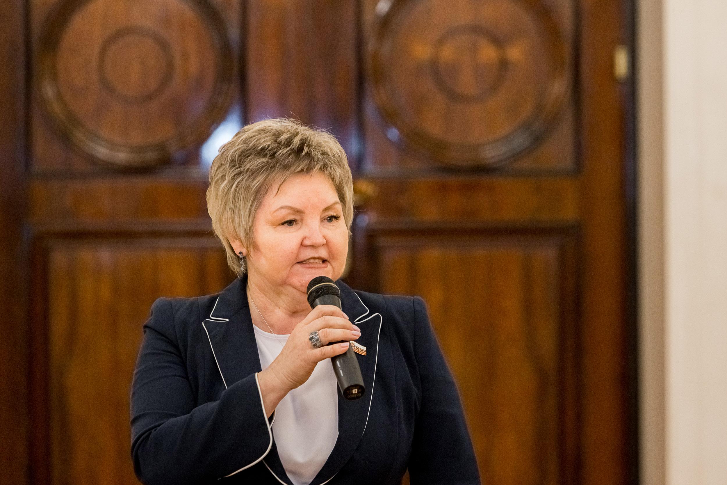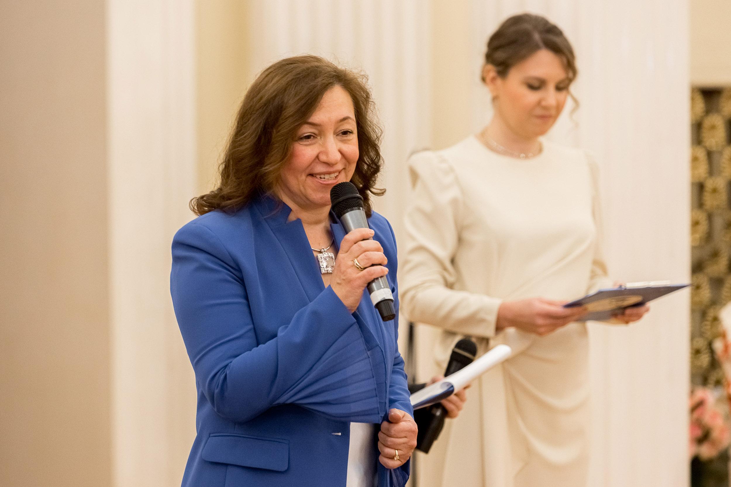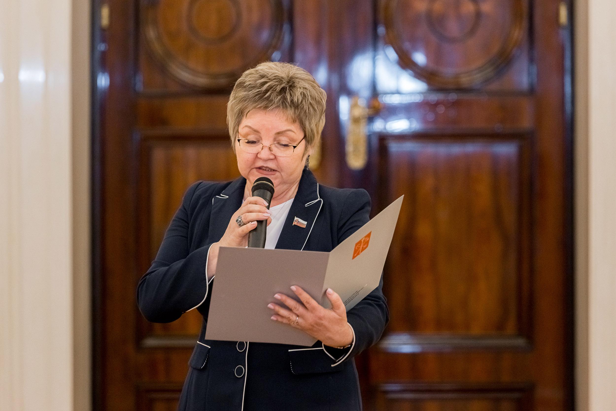 К участникам Торжественной церемонии обратилась депутат Вера Сергеева. Она зачитала приветственное слово Председателя Законодательного Собрания Санкт-Петербурга Александра Бельского: