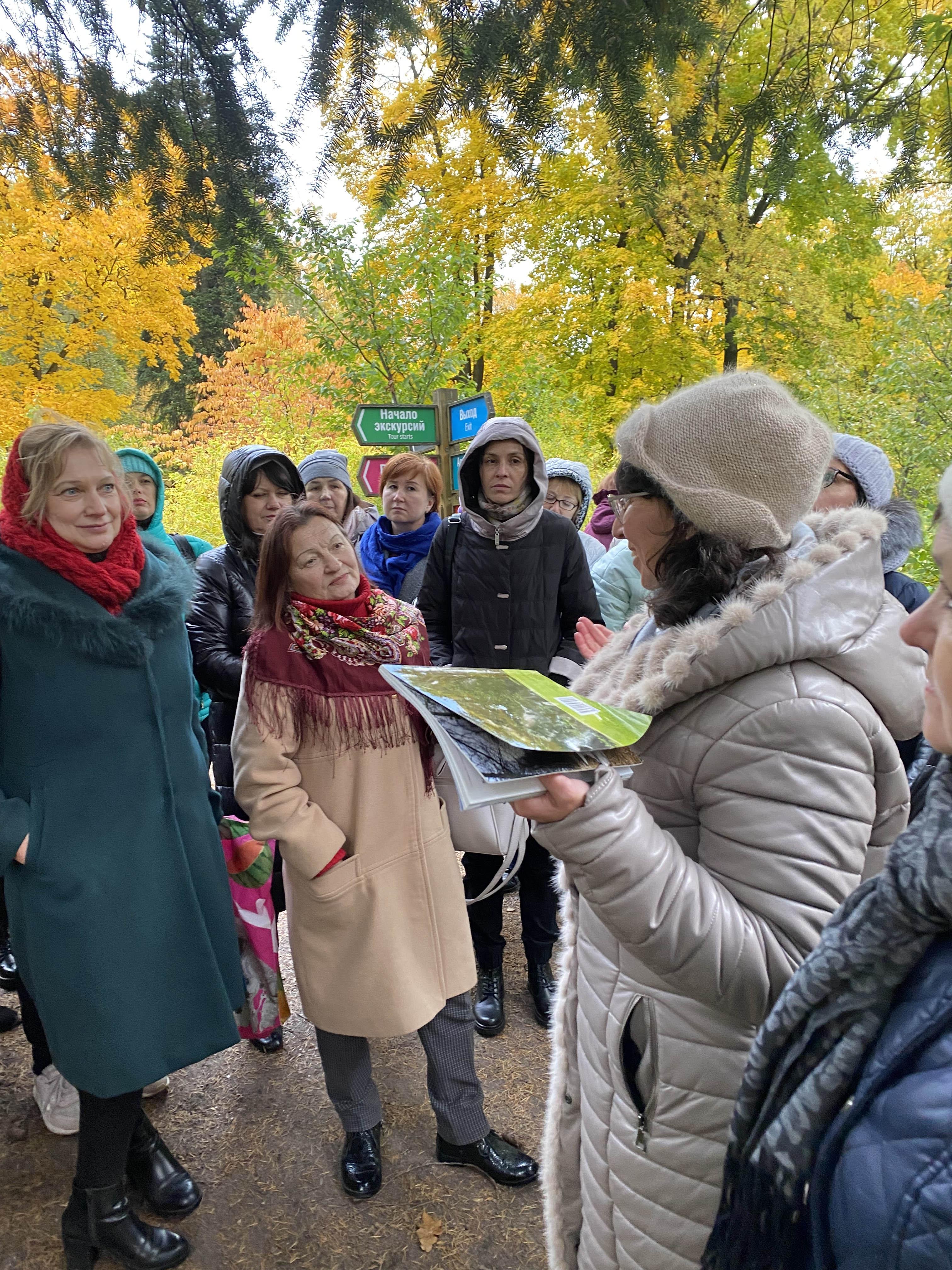 Для педагогов была организована экскурсия «Фенологическая осень в Ботаническом саду Петра Великова», которую провела Фадеева Инна Вадимовна, кандидат биологических наук, ведущий специалист Фенологического центра БИН им. В. Л. Комарова РАН.