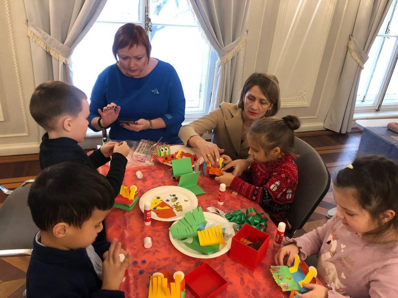 Мероприятие проходило на нескольких площадках. Воспитатели показали театрализованное представление и провели мастер-класс для детей по изготовлению символа Нового года - Дракона.