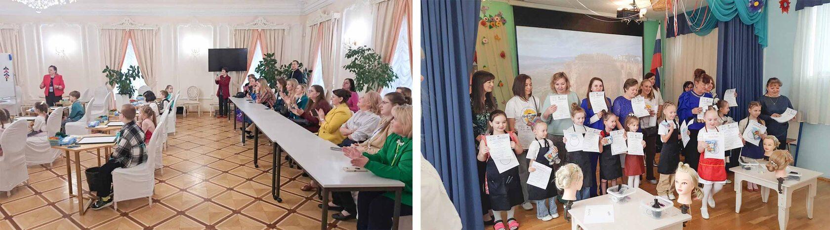 А в ГБДОУ детский сад № 4 Красносельского района 9 юных мастеров поразили всех своими умениями создавать вечерние причёски.