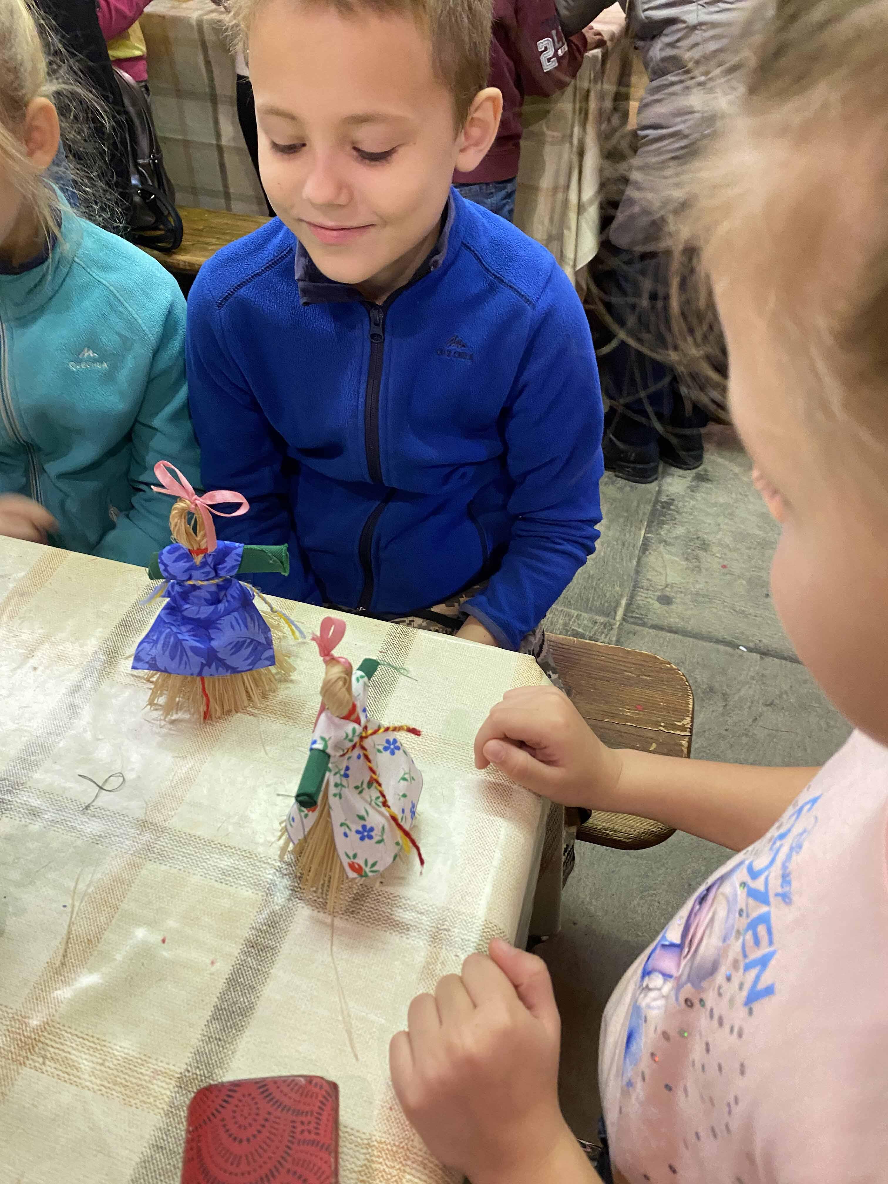 Своими руками ребята создали игрушки из лыка, нарядили их в сарафаны и платочки. Кульминацией мастер-класса, вызвавшей восторг присутствующих, стал танец кукол на столе: дети поставили игрушки на стол и с азартом стали стучать по столу кулачками. И произошло волшебство, куклы задвигались, закружились в танце. Время занятия пролетело незаметно.