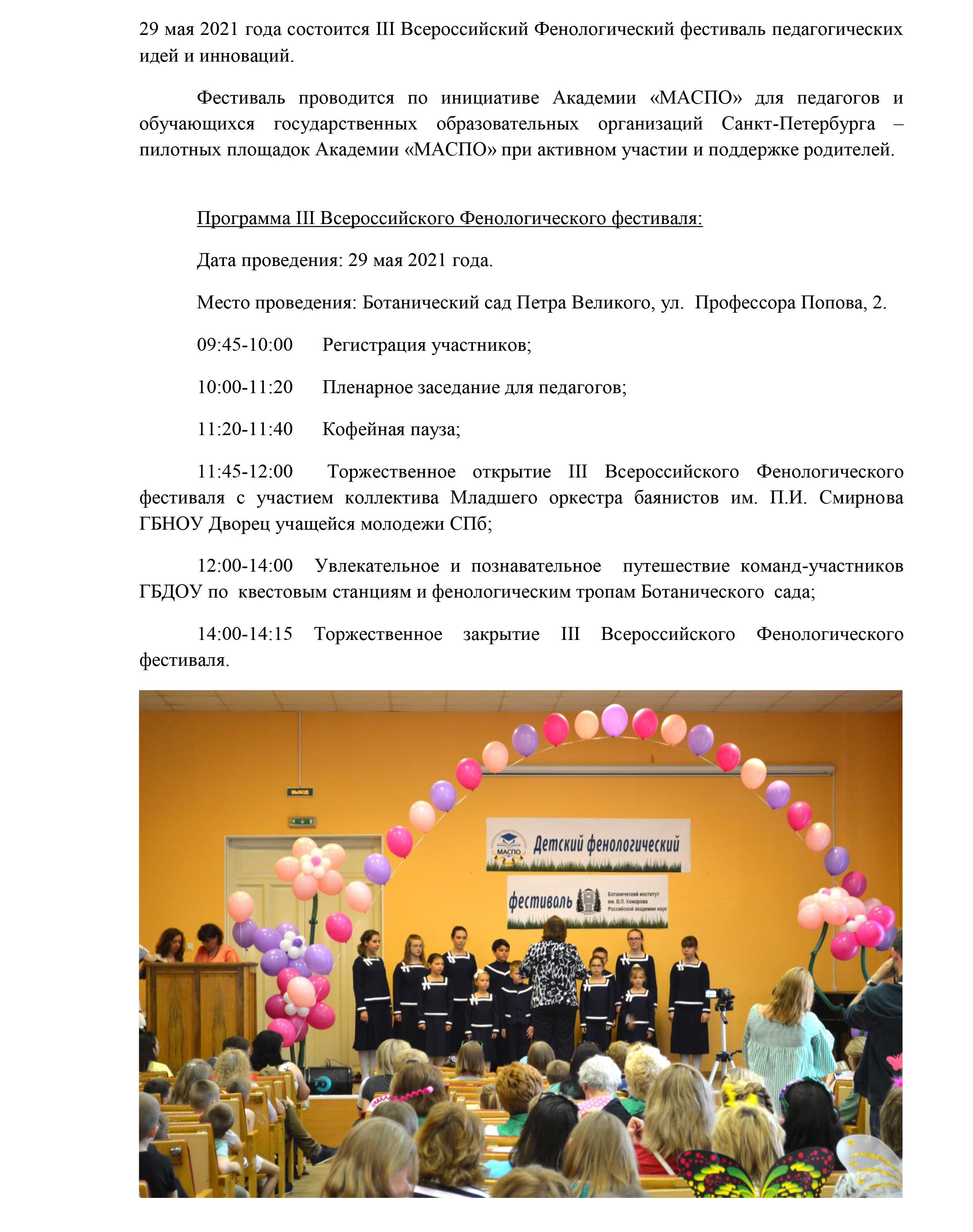 29.05.21 года состоится III Всероссийский Фенологический фестиваль педагогических идей и инноваций