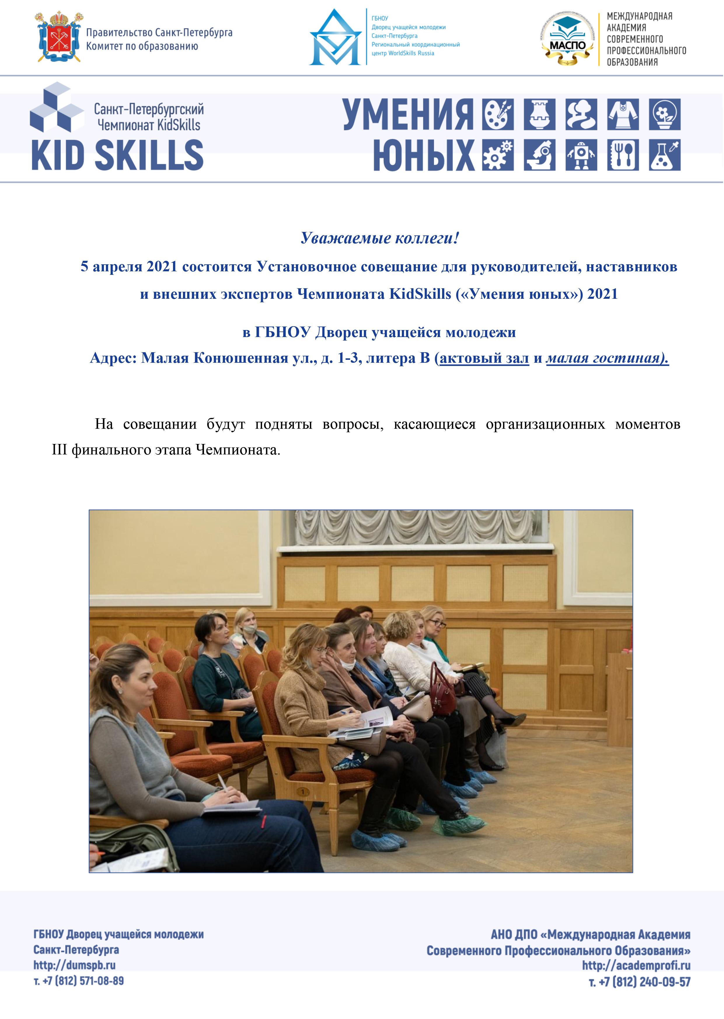 5 апреля 2021 состоится Установочное совещание Чемпионата KidSkills («Умения юных») 2021