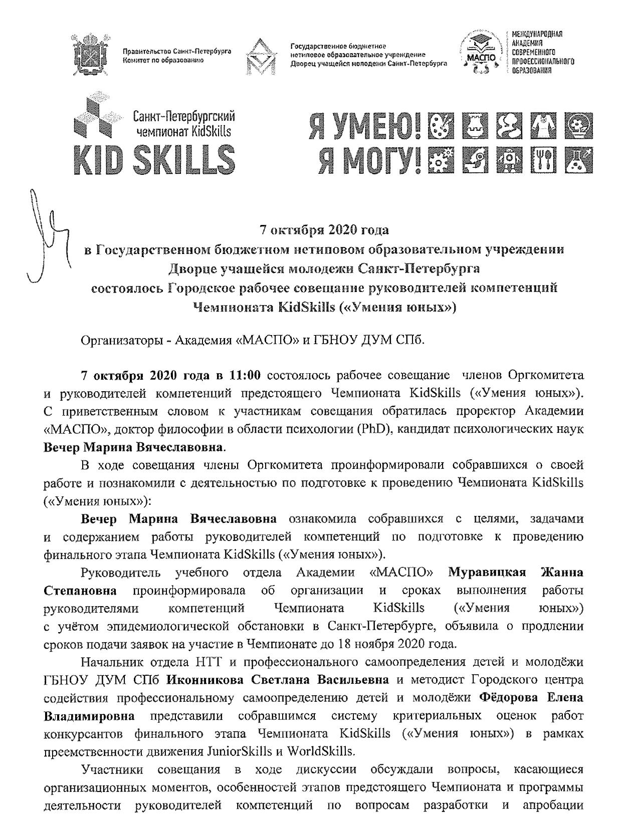 07.10.20 Состоялось Городское совещание руководителей компетенций Чемпионата KIdSkills ("Умения юных")