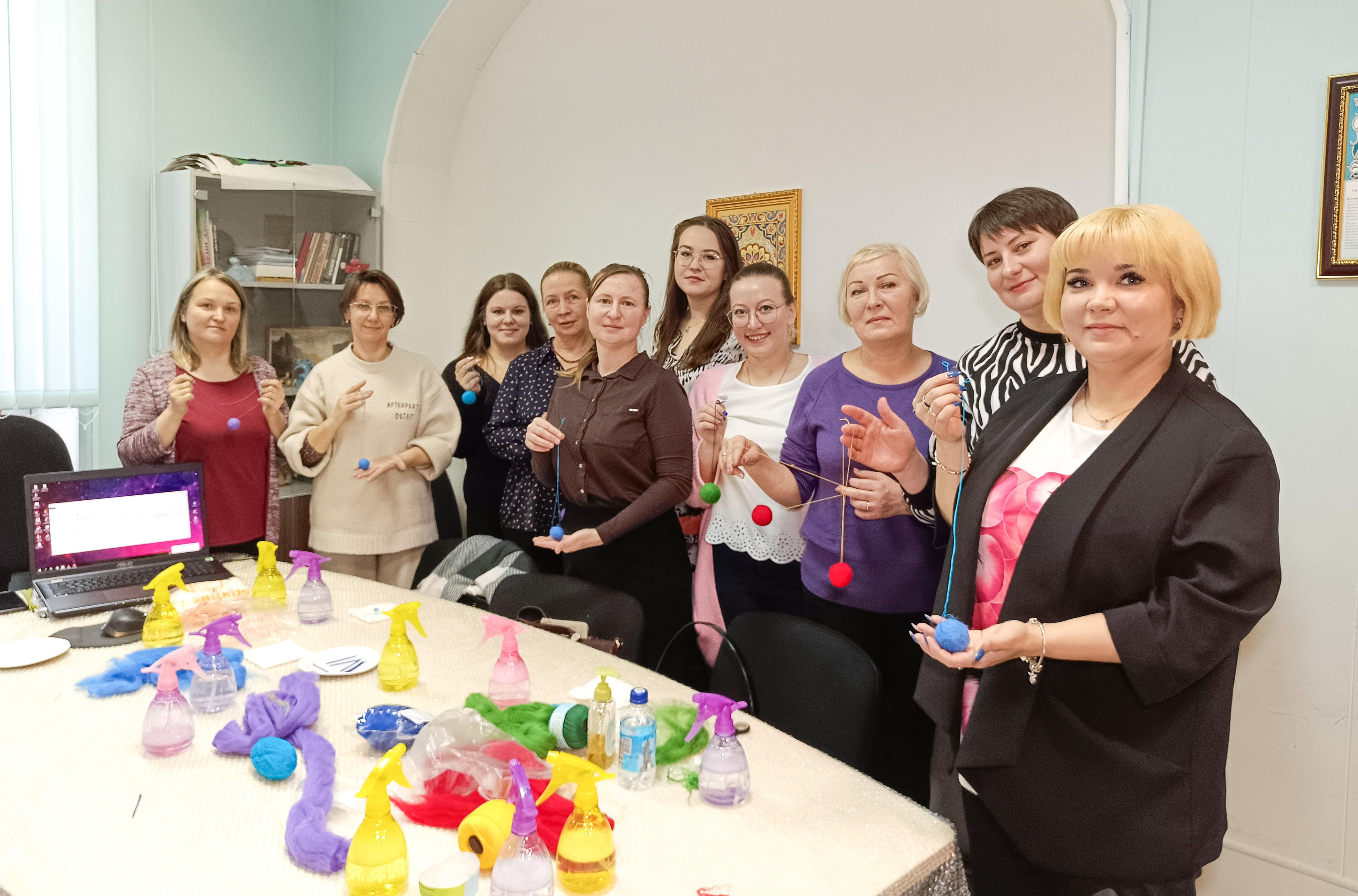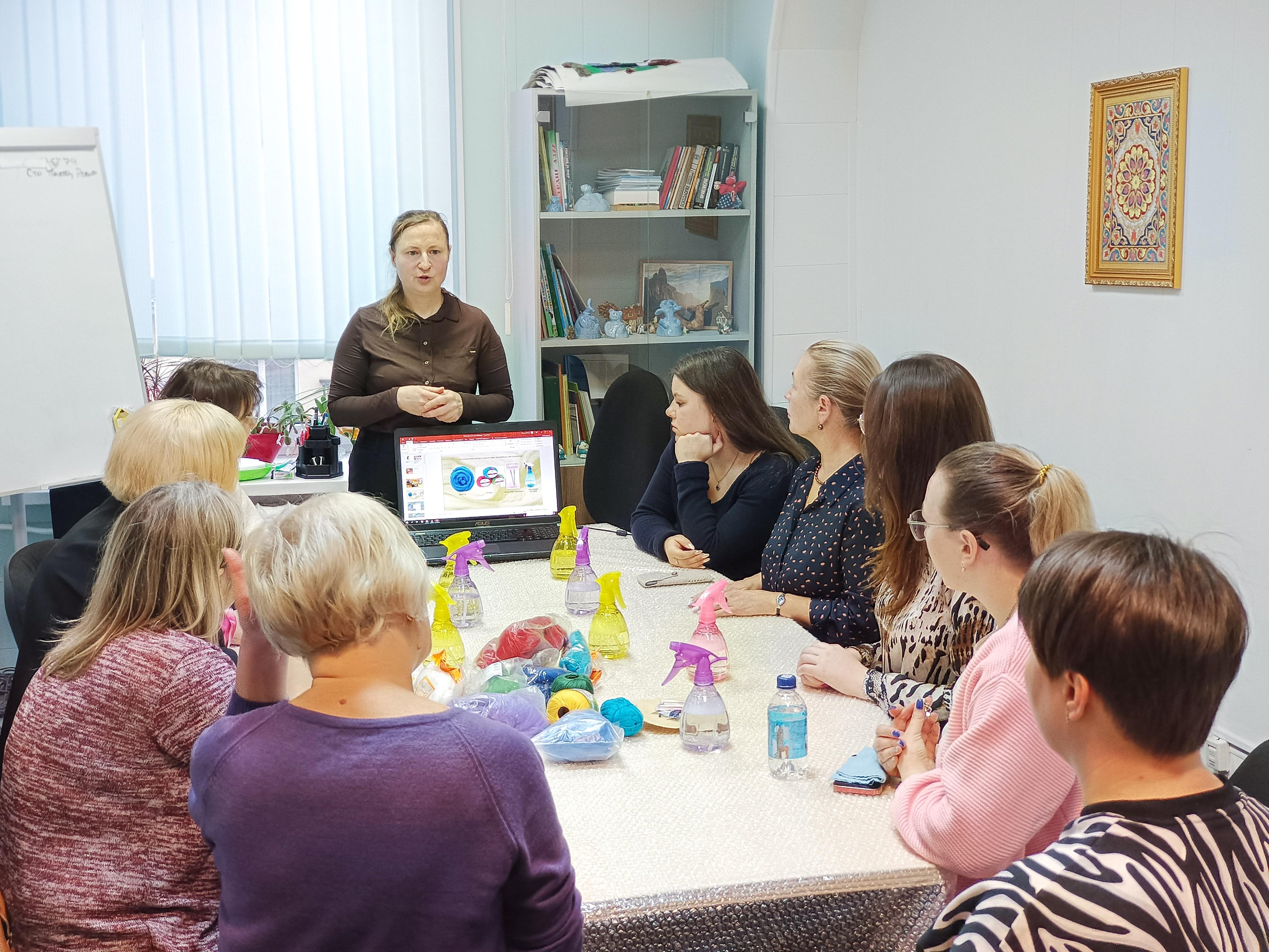 В процессе работы участники мастер – класса познакомились с материалами, инструментами, техникой и секретами мокрого валяния, получили советы и рекомендации при работе с детьми с ограниченными возможностями здоровья от опытного Главного эксперта Чемпионата Денисюк Ирины Ористовны. Мастер-класс прошел в теплой, неформальной обстановке. Каждый наставник изготовил Дар Фребеля № 1, поделился опытом работы со своими воспитанниками.