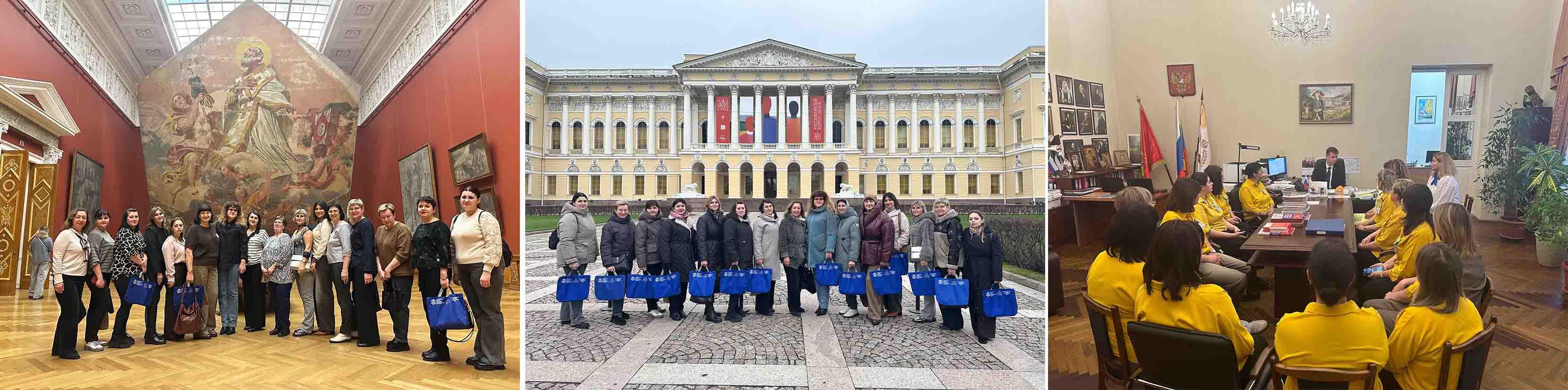 Значительной частью программы стало посещение ГБОУ гимназии № 209 Центрального района Санкт-Петербурга "Павловская гимназия". Участники ознакомились с системой работы по обеспечению преемственности между дошкольным и начальным образованием, а также с современными технологиями формирования инженерного мышления у воспитанников. Культурная программа включила посещение объектов исторического наследия, в том числе храма Спас на Крови, Михайловского театра и Мемориального музея-квартиры А.С. Пушкина.