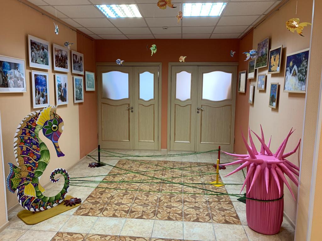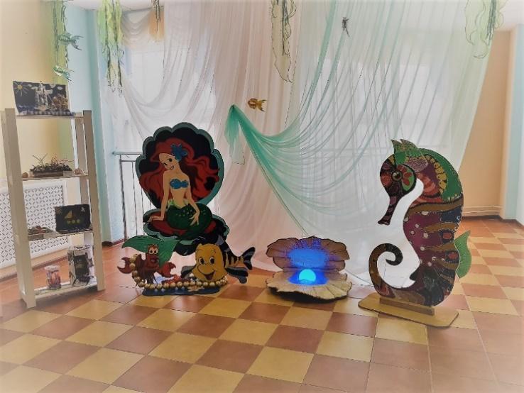 Зрители увидели созданную руками педагогов и родителей ДОУ развивающую среду детского сада – коралловые рифы, сказочных морских коньков, Русалочку со светящейся жемчужиной. Все пространство детского сада было оформлено, как сказочное «Морское царство».