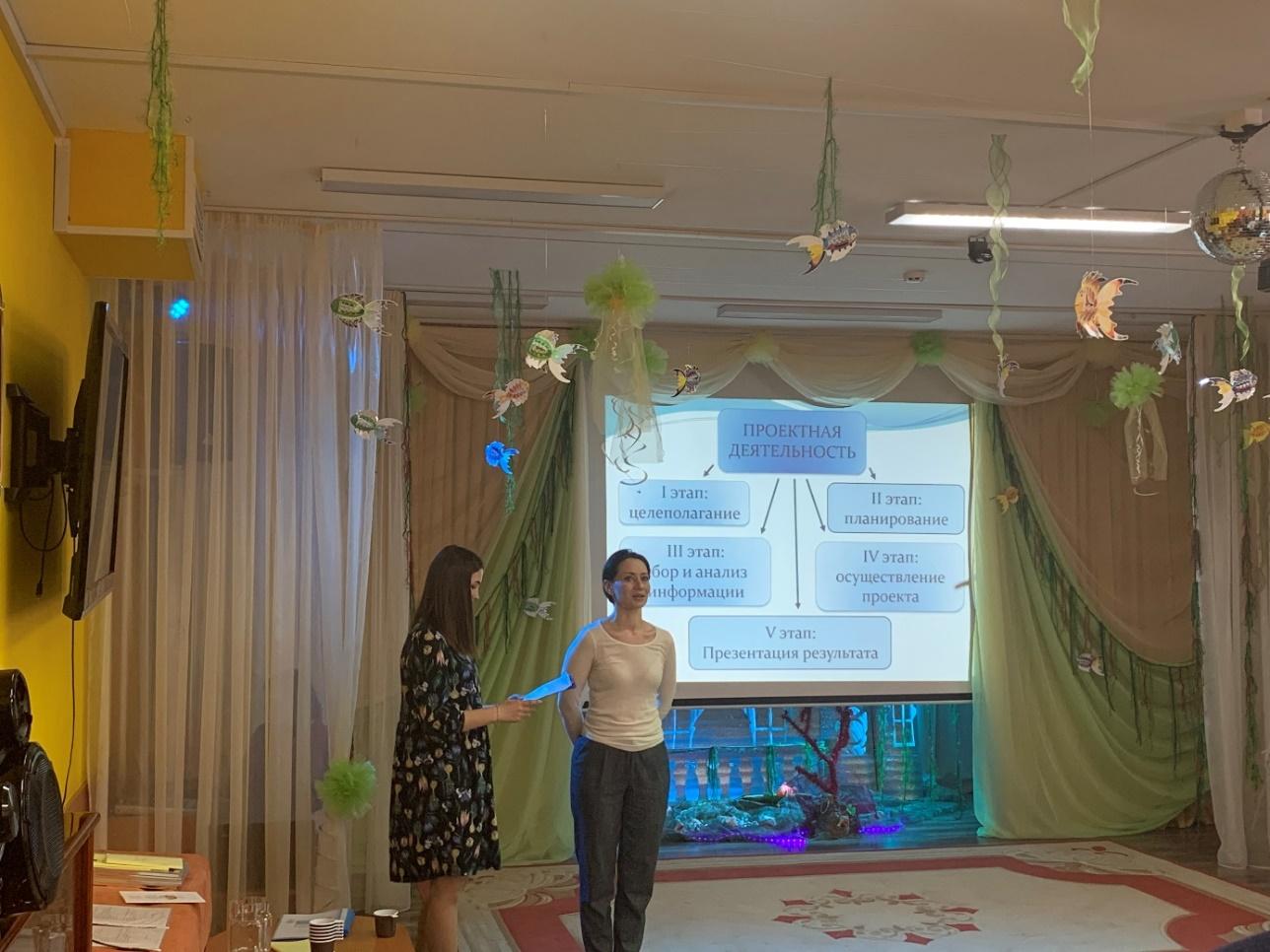 Интересным был опыт работы педагогов ГБДОУ детский № 26 общеразвивающего вида Красногвардейского района, который представили старший воспитатель Бурова Екатерина Анатольевна и воспитатель Лежнева Анастасия Николаевна. Они рассказали о современных информационных и цифровых технологиях по поддержке исследовательского поведения дошкольников (USB - микроскоп, интерактивная панель с программным обеспечением mozaBook, Pogumax), а также представили образовательный проект «Подводный мир».