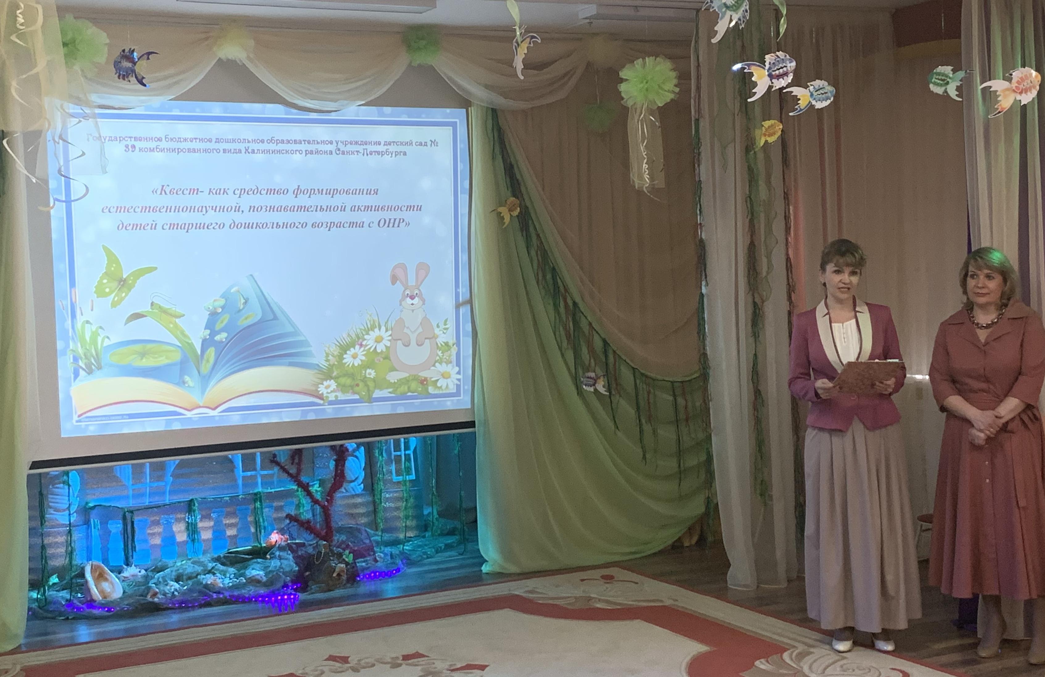 С презентацией опыта работы «Квест как средство формирования естественнонаучной познавательной активности детей старшего дошкольного возраста с ОНР» выступили педагоги из ГБДОУ детский сад № 39 Калининского района Андрианова Оксана Викторовна и Зверькова Оксана Владимировна.