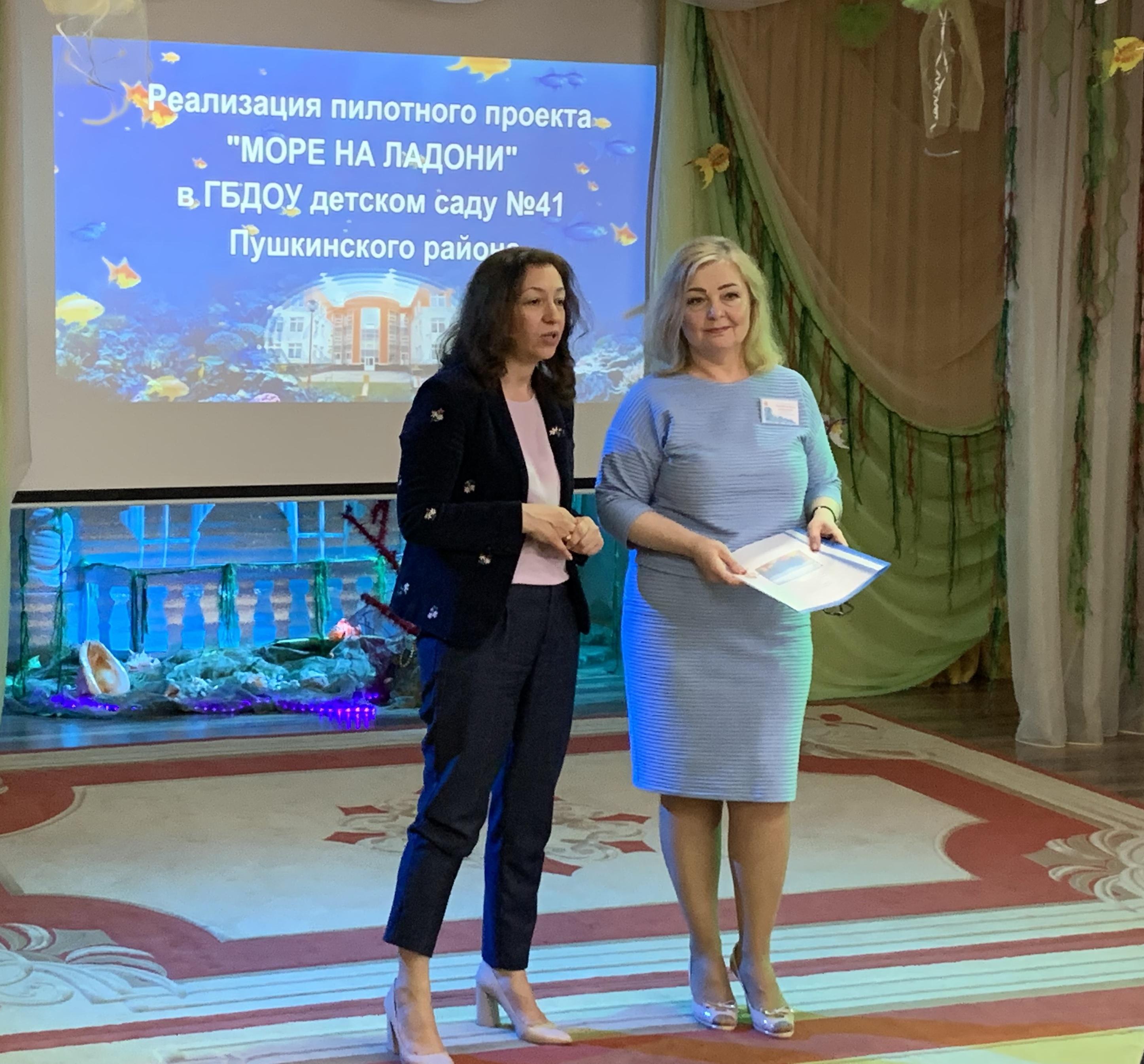 Коллектив педагогов и воспитанников ГБДОУ детский сад № 41 Пушкинского района показали участникам и гостям семинара квест - игру «Невероятные приключения в Сказочном царстве коралловых рифов», на тему проекта «Море на ладони». Гости вместе с героями квеста спасали коралловый риф от хищных морских звезд Акантастеров.