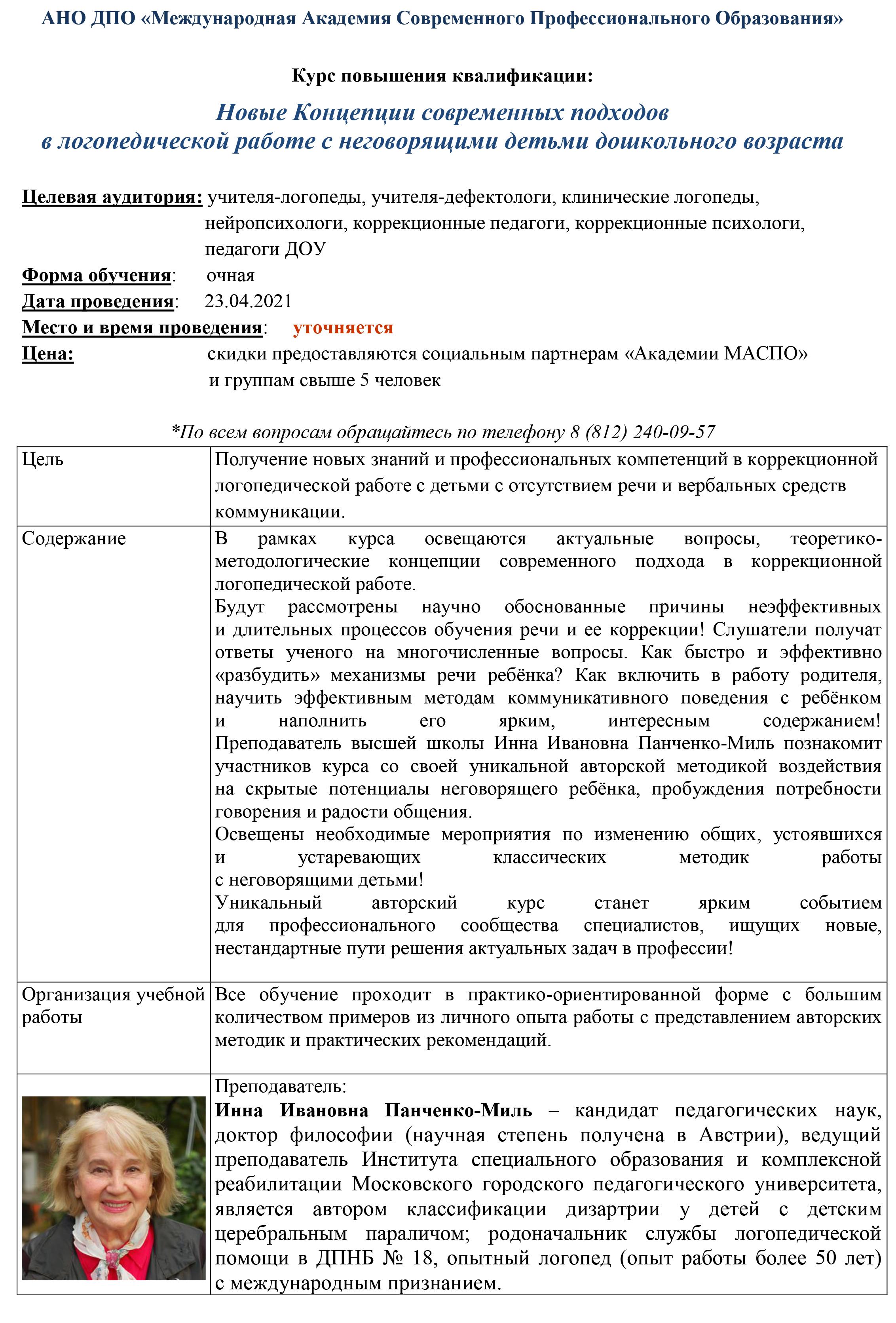 Новые Концепции современных подходов в логопедической работе с неговорящими детьми дошкольного возраста