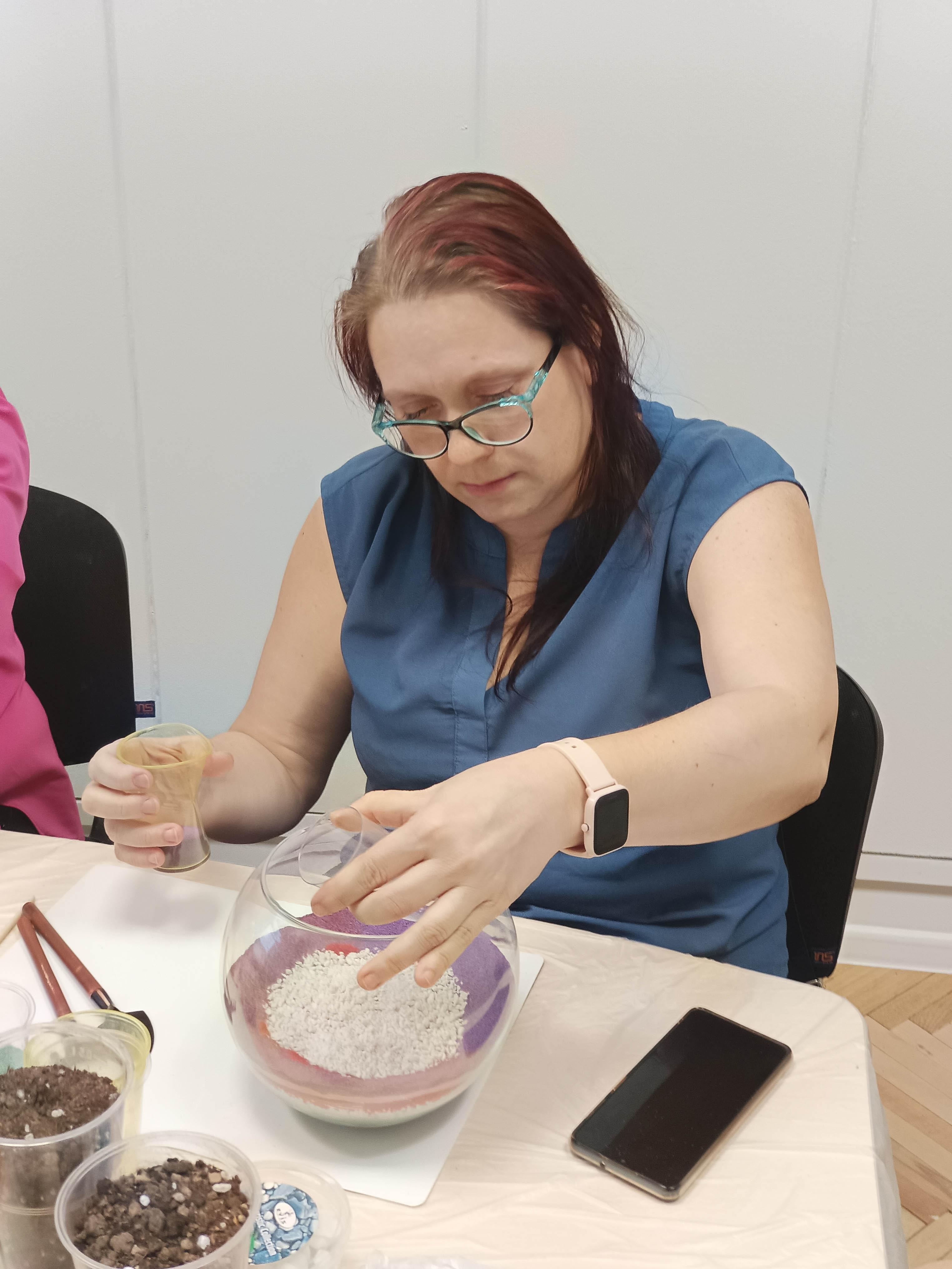 25.01.2024 Главный эксперт компетенции "Юный фитодизайнер", член экспертного сообщества Чемпионата "УМЕНИЯ ЮНЫХ" KidS ® с 2019 г., ведущий методист учебного отдела Академии "МАСПО" Булатецкий Максим Викторович рассказал педагогам об основных шагах по созданию флорариума, показал как работать с миниатюрными садовыми инструментами и сажать растения. Наставники узнали тонкости работы с композицией, цветом и расстановкой деталей на рабочем пространстве.