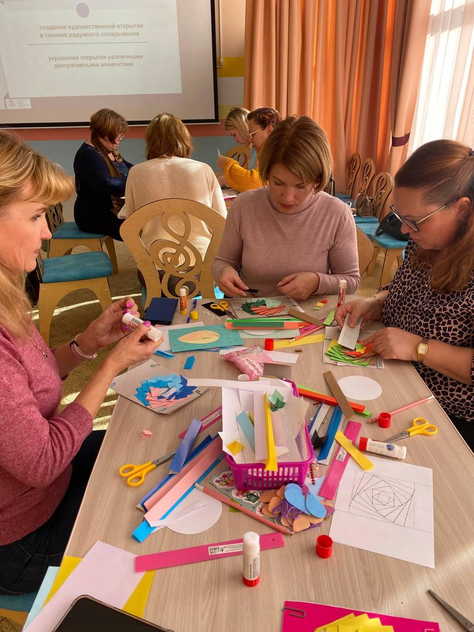 Уважаемые коллеги! 12 октября в ГБДОУ детский сад № 23 Красногвардейского района прошел мастер-класс по изготовлению открытки в технике радужное складывание (айрис фонллдинг) в рамках подготовки к Чемпионату «УМЕНИЯ ЮНЫХ» KidS 2022-2023. Методист детского сада № 23 Наталья Юрьевна Терехова подготовила презентацию по новой компетенции Чемпионата «Юный мастер-дизайнер художественной открытки». Педагоги познакомились с историей открытки и техникой радужного складывания. У этой техники большие достоинства: совершенствуется мелкая моторика рук, тренируется глазомер, развивается конструктивное мышление и художественный вкус. Участники мероприятия с большим интересом включились в работу, изучили методику и выполнили великолепные работы. Академия "МАСПО" выражает благодарность коллективу ДОУ за организацию мастер-класса! |