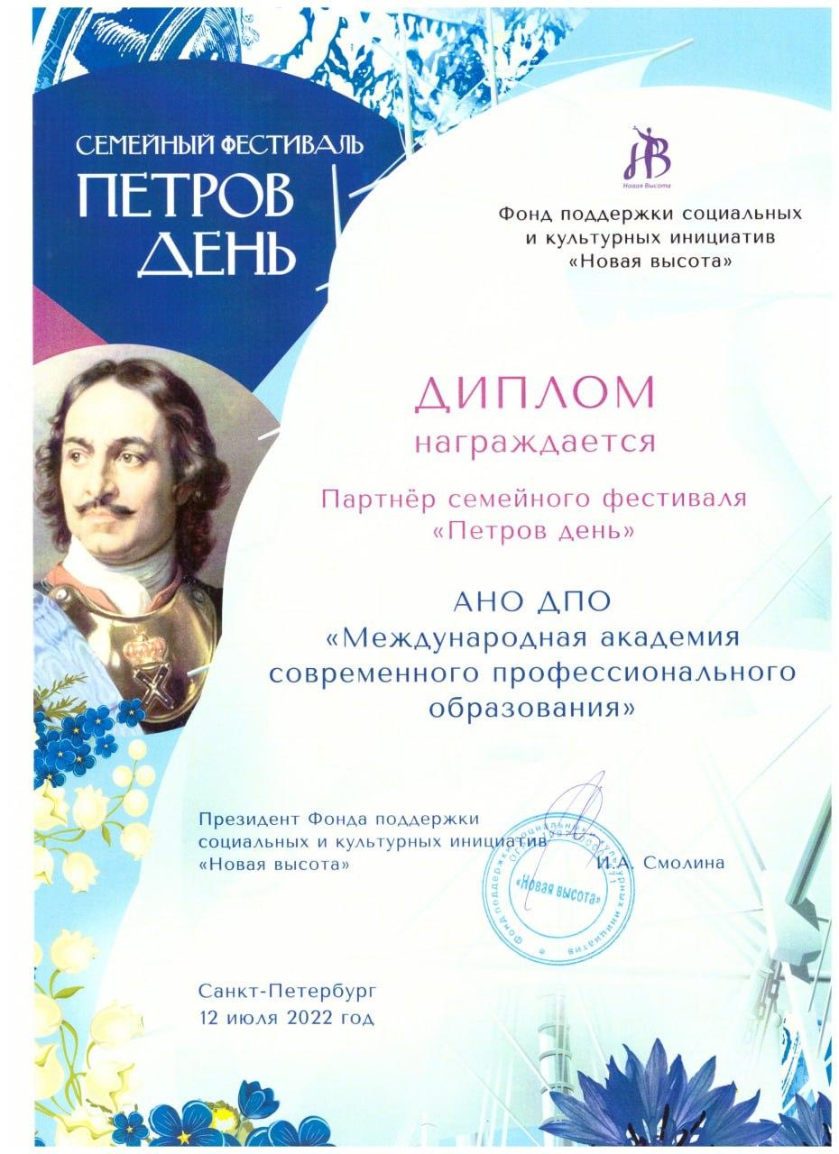 12 июля в Северной столице, в день святых первоверховных апостолов Петра и Павла, при поддержке Комитета по культуре Санкт-Петербурга прошёл семейный Фестиваль «Петров день». Организатором стал Фонд поддержки социальных и культурных инициатив «Новая высота» при участии Международной Академии Современного Профессионального Образования (АНО ДПО «МАСПО»). Фестиваль прошёл на открытой площадке в Александровском саду у фонтана. В этом красивом историческом парковом пространстве, под открытым небом была специально оборудована интерактивная площадка с эстрадой Академия «МАСПО» на площадке «Золотых рук мастера» представила две новые компетенции Чемпионата «УМЕНИЯ ЮНЫХ» KidS 2022-2023: «Юный инженер - конструктор» и «Юный мастер Мастер-классы в интерактивной форме провели Главные эксперты Чемпионата Ботнарчук Алёна Ивановна и Ахмедова Камала Сахиб кызы. Мастер-класс компетенции «Юный инженер - конструктор» в технике «IQ - волшебные кубики CUBORO и LEGO» погрузил всех участников в креативное пространство, способствующее формированию самых востребованных навыков на сегодняшний день: творчество, креативность, критическое и инженерное мышление, умение работать в команде. Мастер-класс компетенции «Юный мастер по изготовлению сувенирной продукции» позволил детям попробовать себя в роли мастера по изготовлению сувенирной продукции в технике «холодного фарфора». Каждый ушёл с творением своих рук - сувениром на память! Участие в творческих мастерских приняли не только дети, но и родители, бабушки и дедушки. Все участники Фестиваля получили яркие эмоции и впечатления! Фестиваль «Петров День» получился по-настоящему семейным!