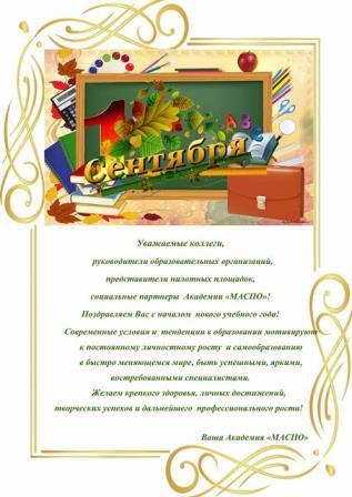 Уважаемые коллеги, партнёры и сотрудники образовательных учреждений! Академия "МАСПО" поздравляет всех Вас с началом учебного года!