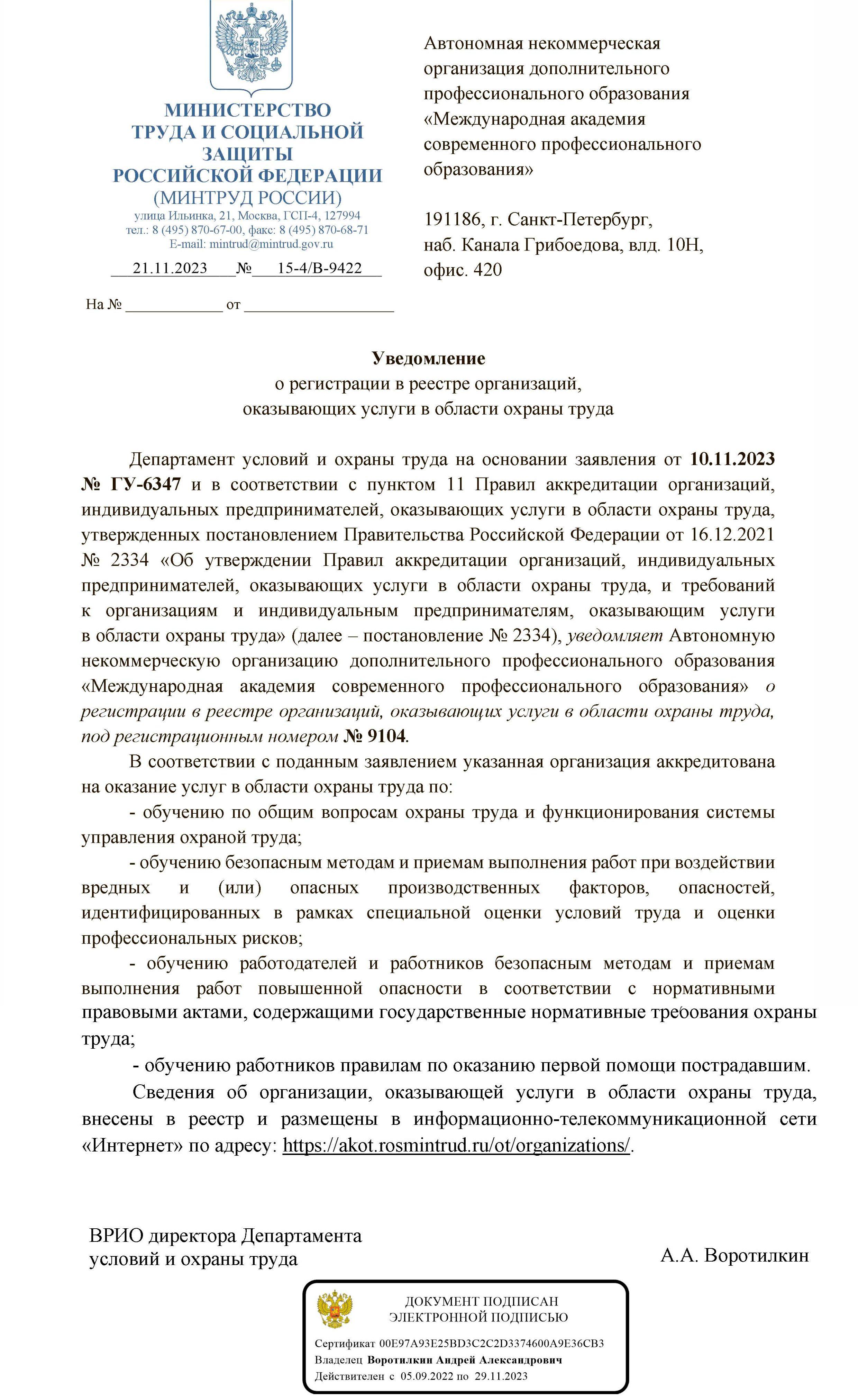 Автономная Некоммерческая Организация Дополнительного Профессионального Образования «Международная Академия Современного Профессионального Образования» проводит курсы, тренинги, семинары для тех, кто стремиться добиться успеха в своем деле. Проведём обучение Вашей команды или отдельных специалистов по программам повышения квалификации и профессиональной переподготовки.