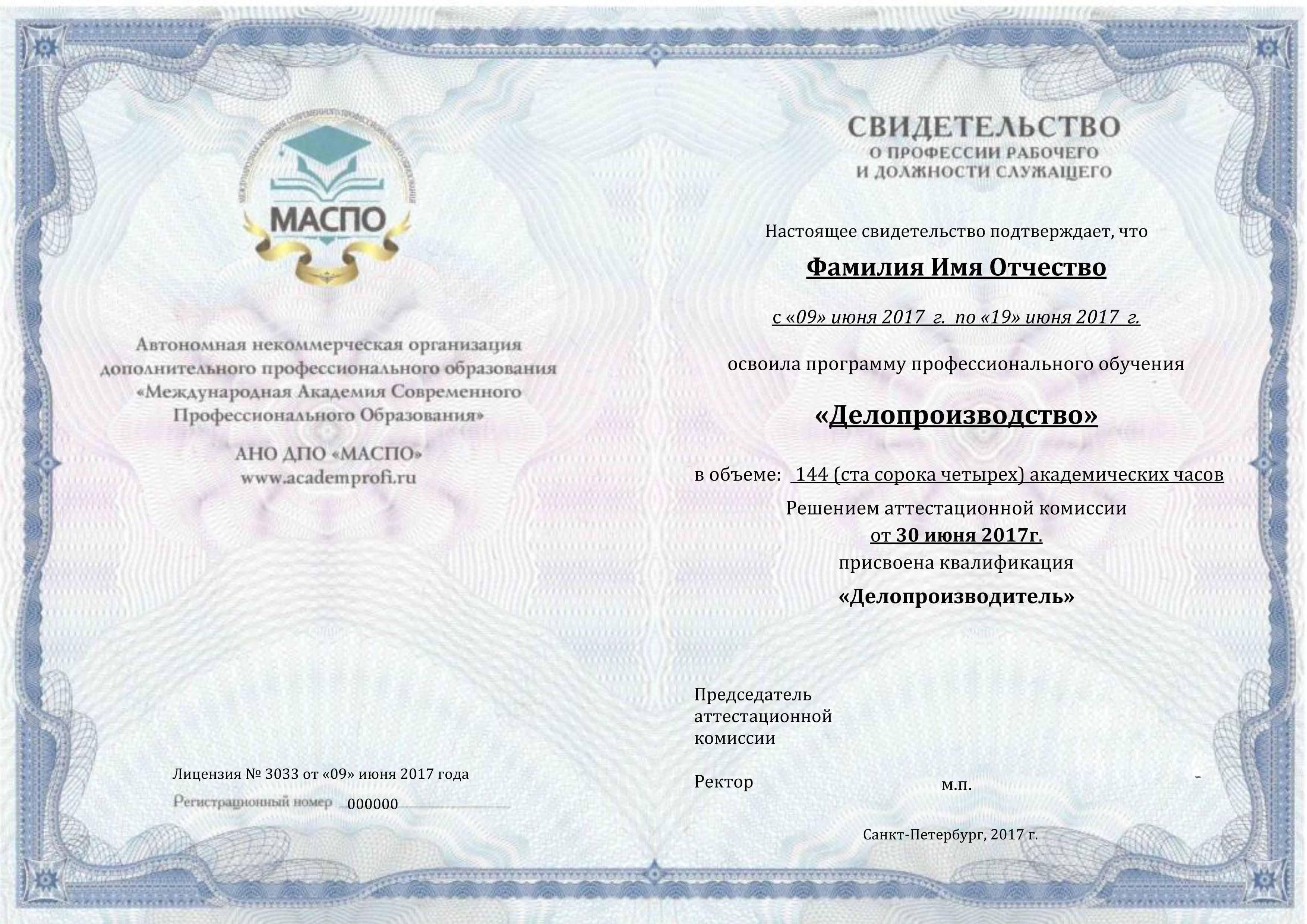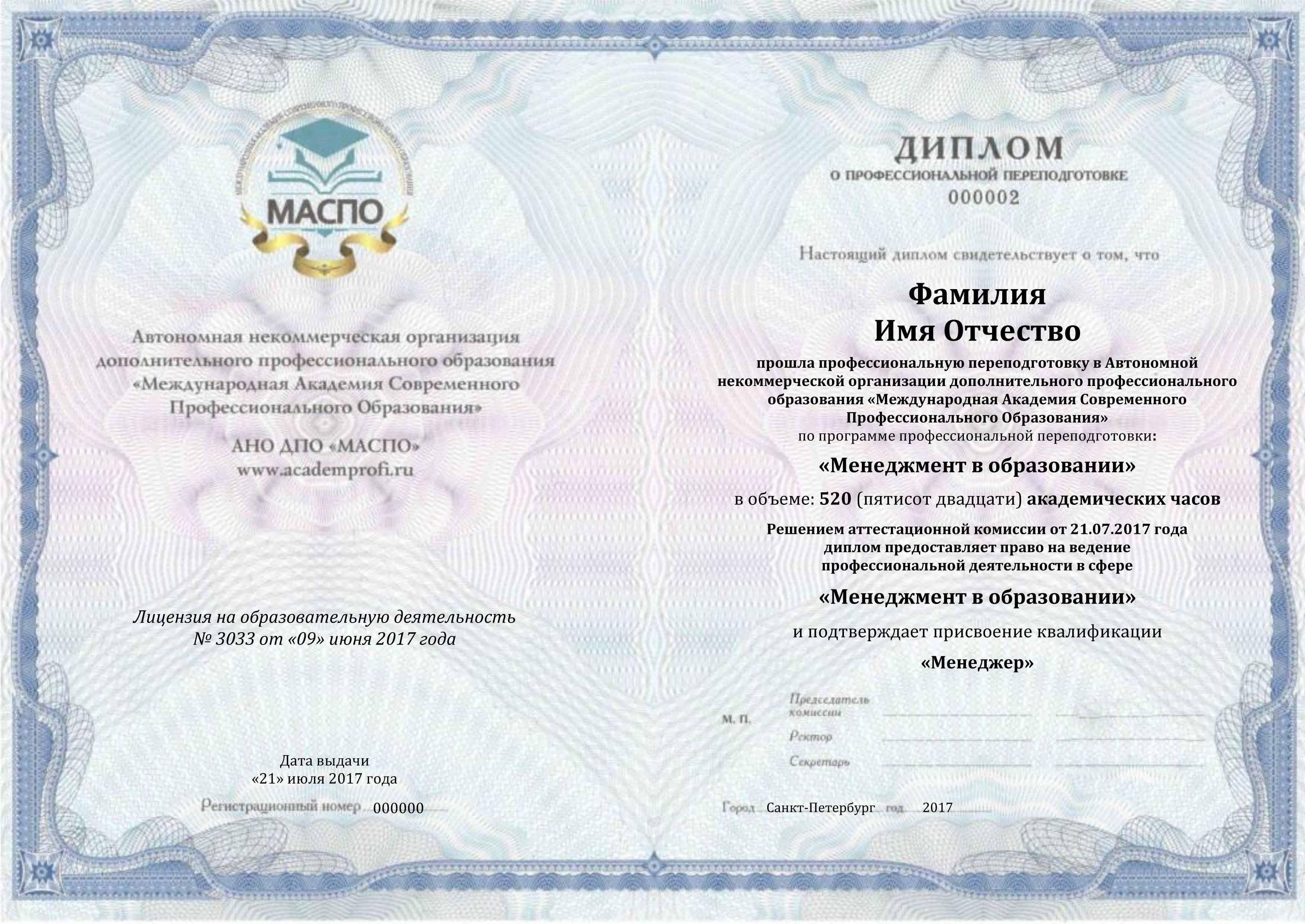 - Диплом о профессиональной переподготовке – для лиц, прошедших обучение свыше 250 часов