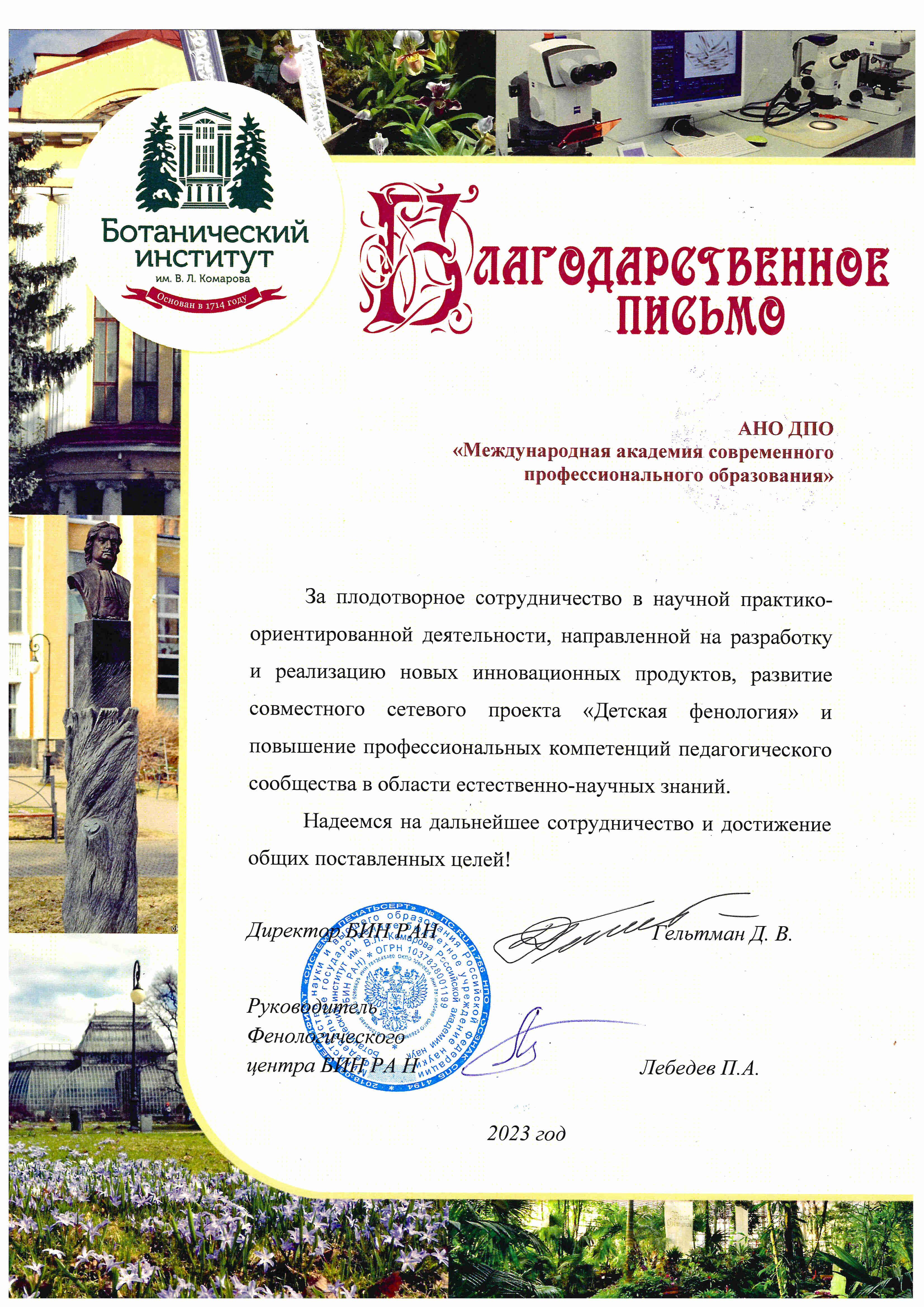 2023 Благ письмо МВ Вечер-БИН РАН2023