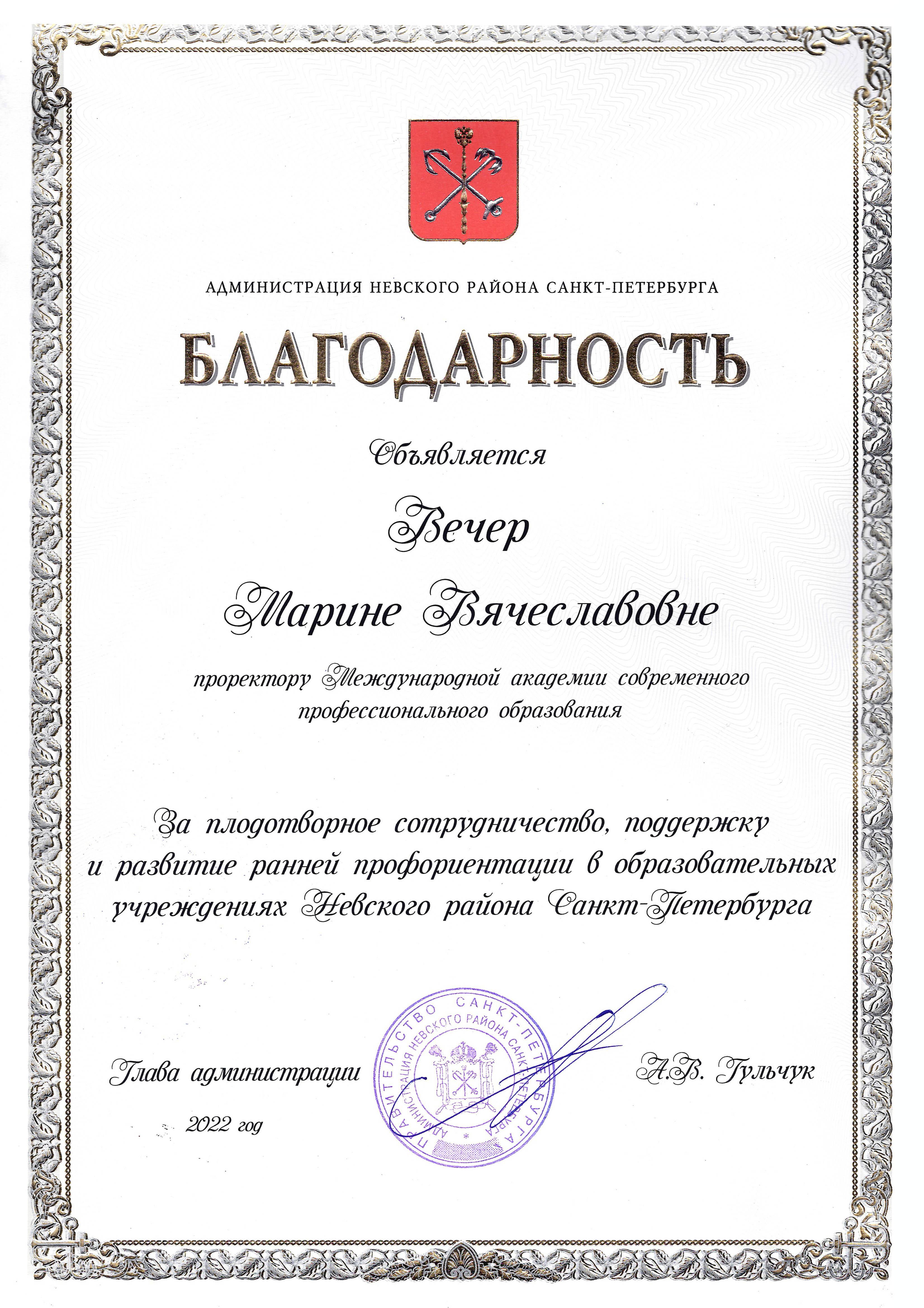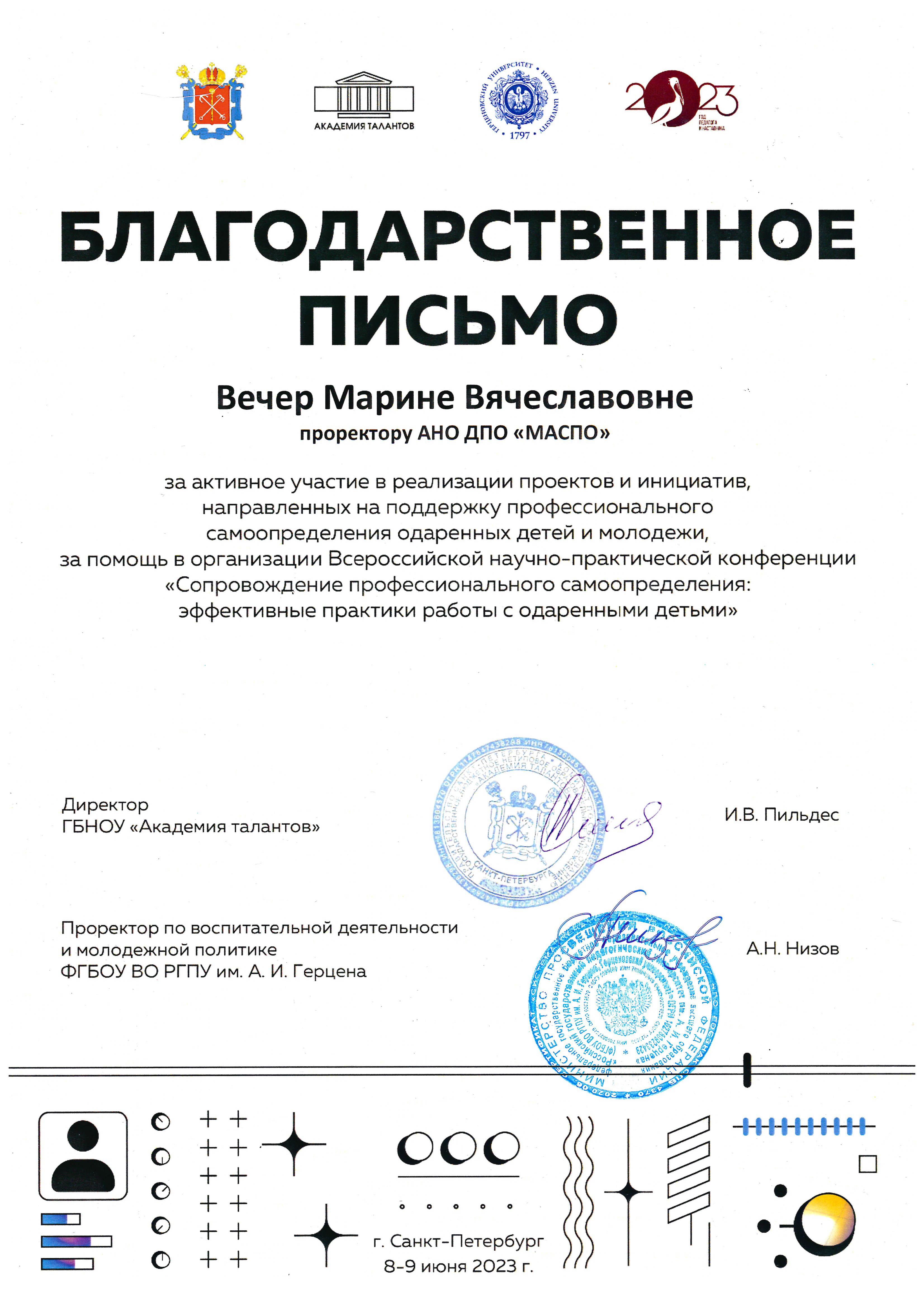 2022 Благ письмо МВ Вечер от АВ Гульчук2022