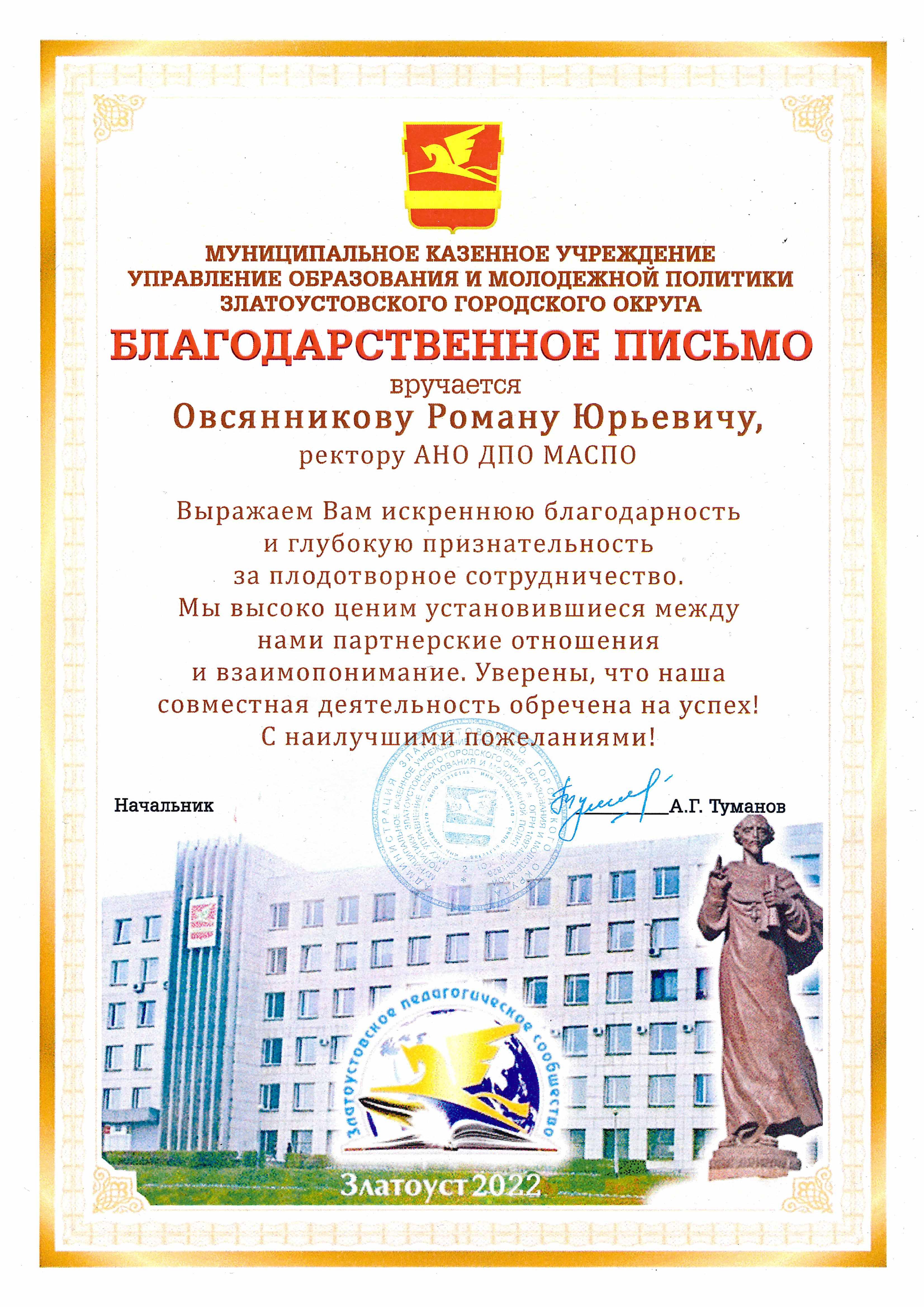 2022 Благ письмо РЮ Овсянникову-Златоуст-АГ Туманов2022