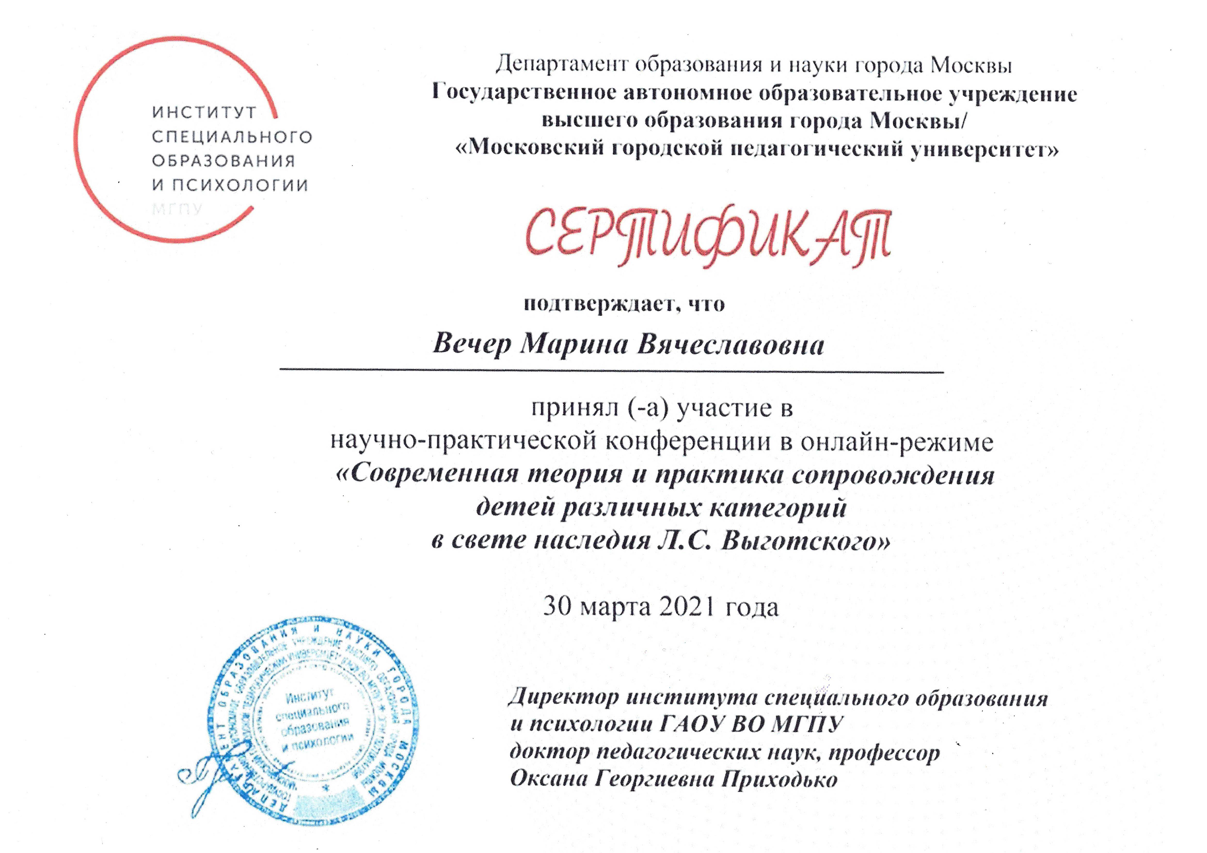 2021 Серт МВ Вечер-ГАОУ ВО МГПУ-ОГ Приходько2021